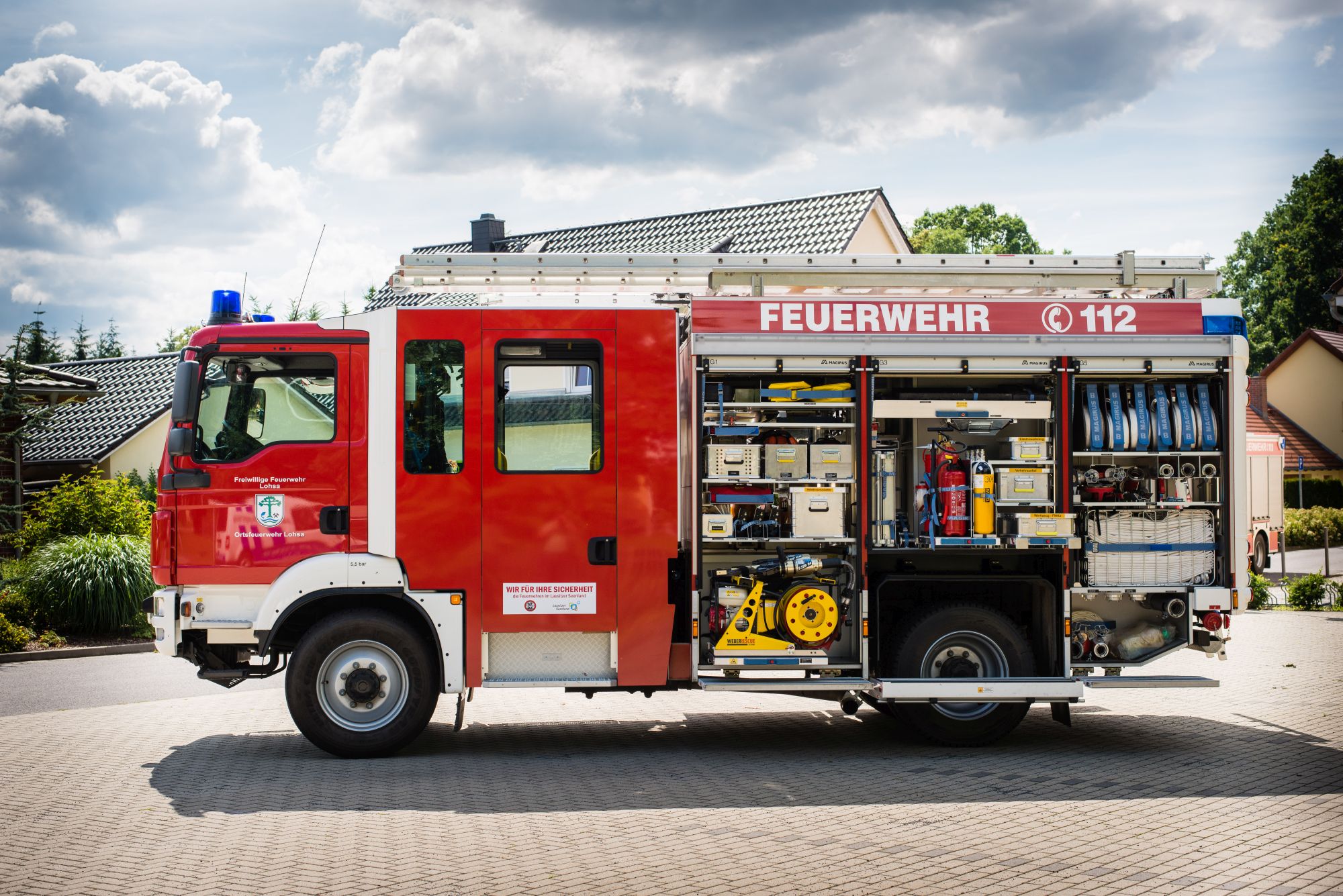 Bei der Berufsfeuerwehr in Hoyerswerda ist seit kurzem ein wahrer Koloss als TLF im Dienst. Ganze 8.000 Liter Wasser hat das Fahrzeug an Bord. Abgelöst wurde mit der Neubeschaffung ein über 30 Jahre altes Tanklöschfahrzeug auf Tatra 815. Das neue TLF 4.000 mit der Zusatzbeladung „Wasser“ kostete rund 347.000 Euro. Der Landkreis unterstützte die Stadt Hoyerswerda dabei mit einer Fördersumme in Höhe von 153.000 Euro. Das 3-achsige Fahrgestell von MAN wurde ergänzt durch einen Ziegler ALPAS-Aufbau. Neben 8.000 Liter Wasser sind auch 800 Liter Schaummittel in einem entsprechenden Behälter gelagert. Eine Druckzumischanlage vom Typ Foam System 24 kann dieses direkt einmischen. Die Pumpe vom Typ FPN 10-3000 befindet sich im Heck des TLFs. Neben einer Selbstschutzanlage sind auch elektrisch verstellbare Werfer vorhanden. Das Fahrzeug wiegt insgesamt rund 26 Tonnen.